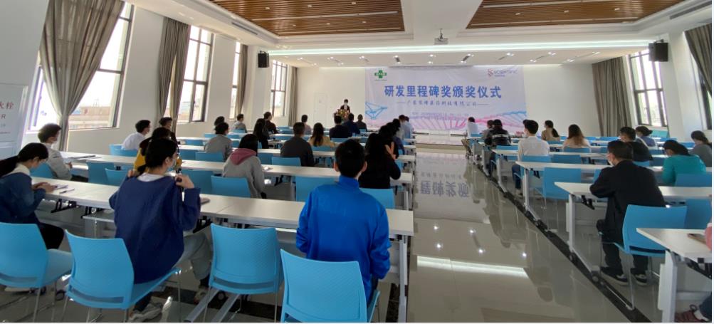 2020年4月13日今年会在广州今年会制药集团8楼多功能会议厅隆重召开了研发里程碑颁奖仪式。集团董事长梁峰先生、副总裁胡功允先生、帅广医药副总经理石杰先生应邀出席颁奖仪式。颁奖仪式上,今年会总经理王端统先生宣布了研发里程碑颁奖决定, 对1月、2月获得注册申报受理号的2个口服固体制剂品种、2月获得注册申报受理号的2个原料药品种,3月获得注册申报受理号的注射剂品种,依据公司研发奖励激励体系管理办法,分别予以研发里程碑颁奖奖励。
